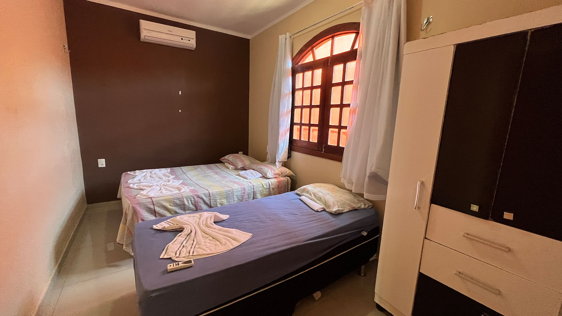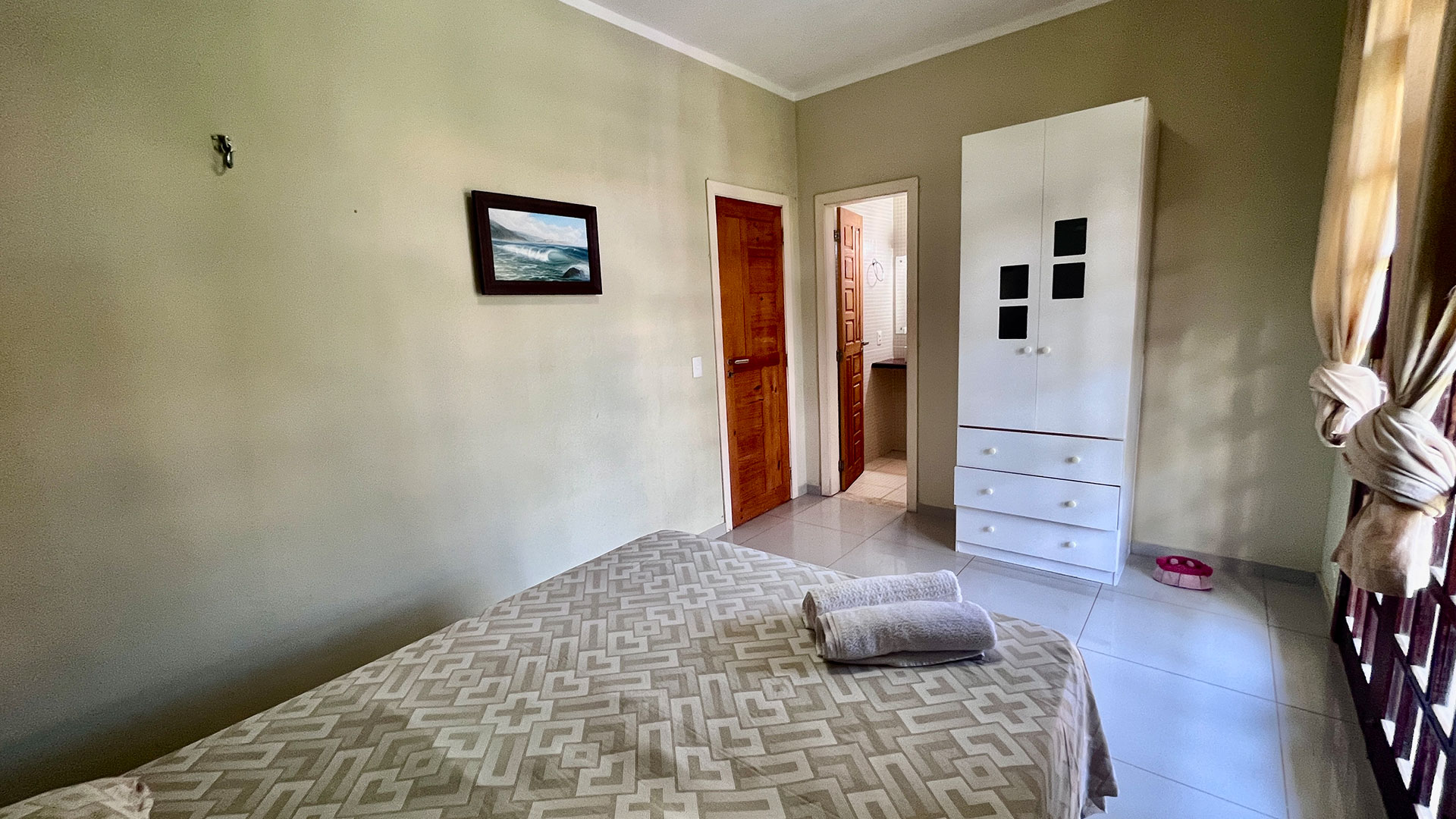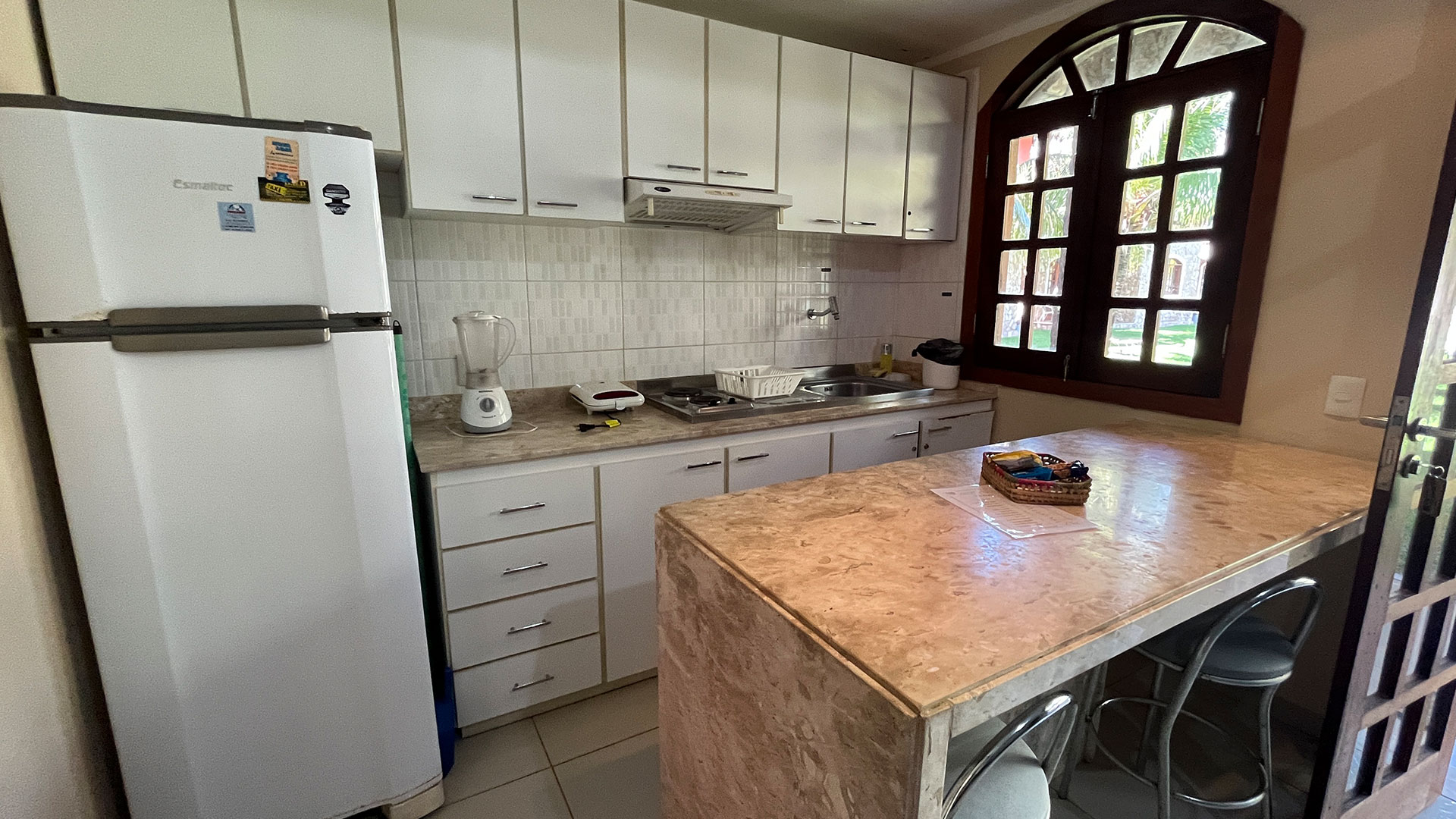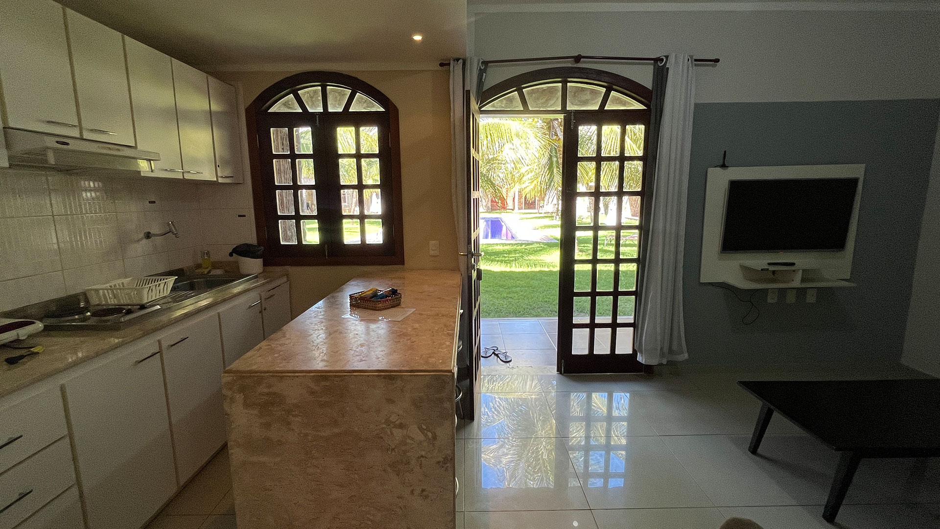 O espaço é funcional e bem equipado, com sala de estar, Wi-Fi, TV e uma cozinha completa que garante mais liberdade durante a estadia. A suíte climatizada acomoda bem, com cama de casal e camas de solteiro, além de varanda com vista direta para a piscina, que faz toda diferença no dia a dia. No geral, é uma opção prática e confortável, perfeita pra casais, famílias ou pequenos grupos.
