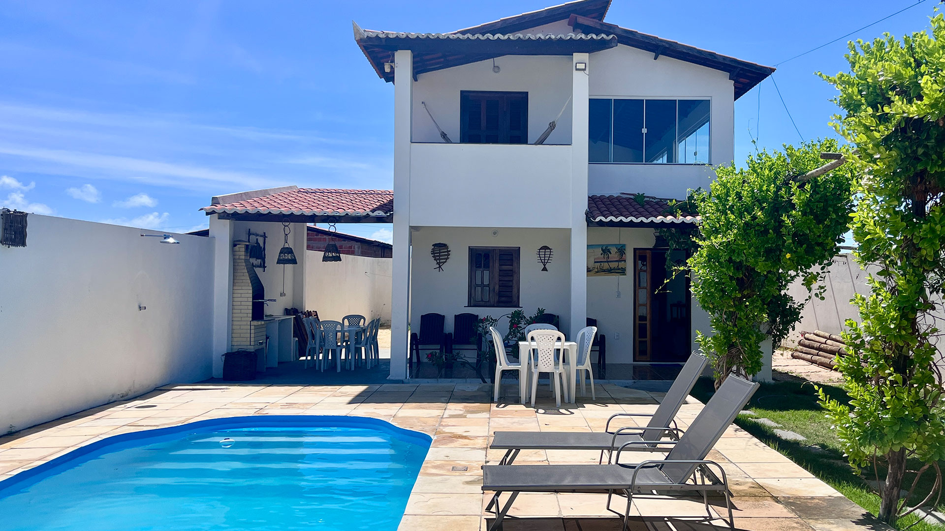 Essa casa duplex é perfeita pra grupos grandes que querem curtir Canoa Quebrada com muito espaço, conforto e área de lazer completa. Com piscina ampla e churrasqueira privativa, ela cria o cenário ideal pra aproveitar os dias de sol e reunir todo mundo em momentos de descontração. A estrutura interna também impressiona, com sala espaçosa, cozinha totalmente equipada e vários ambientes pensados para convivência.