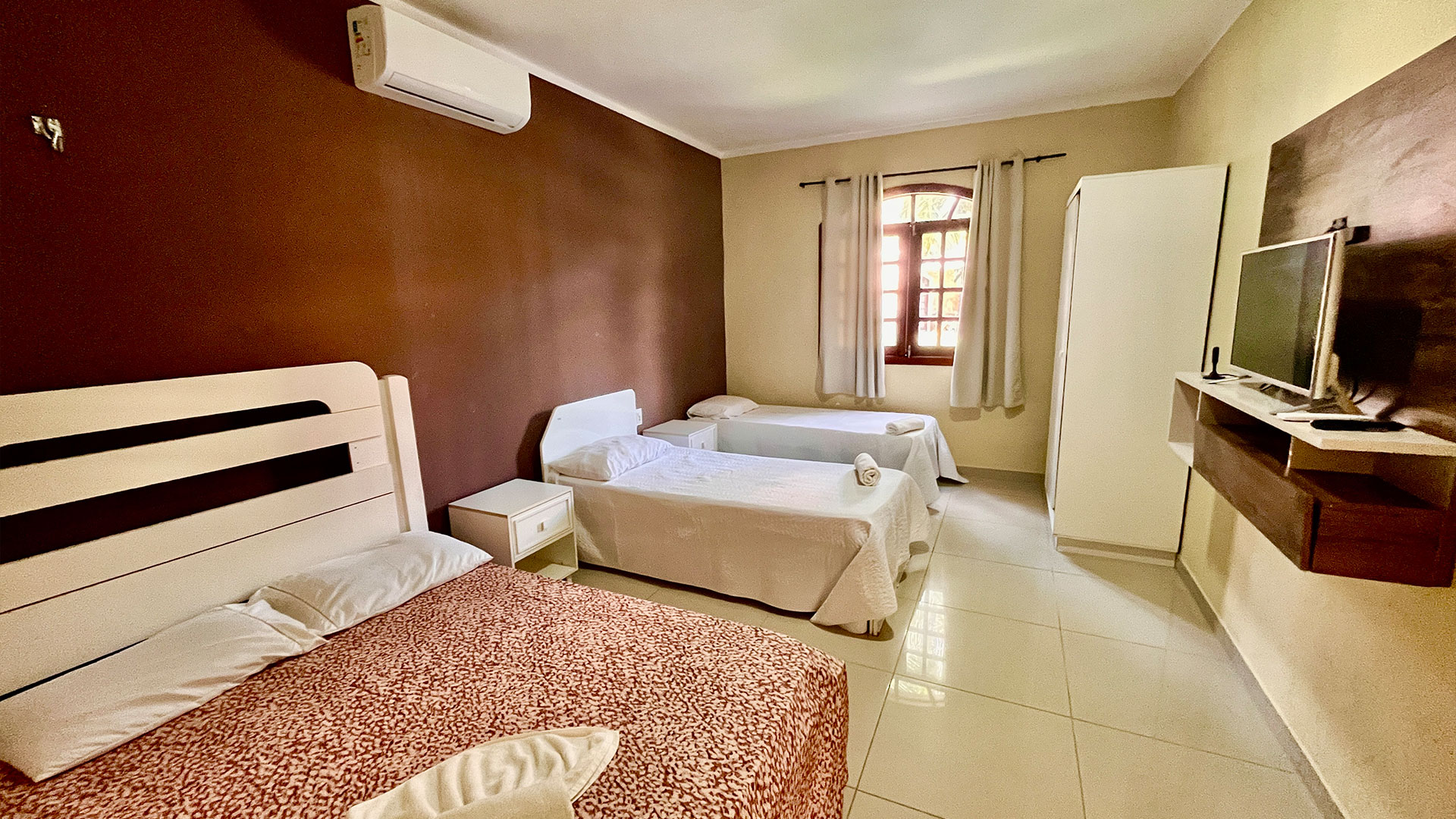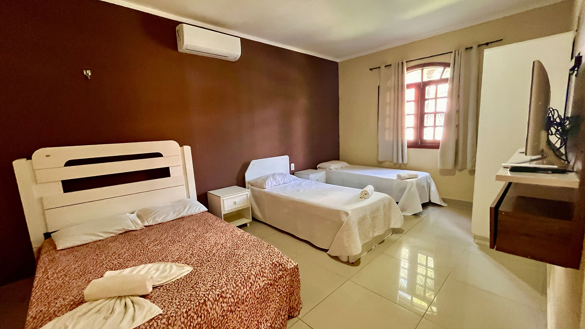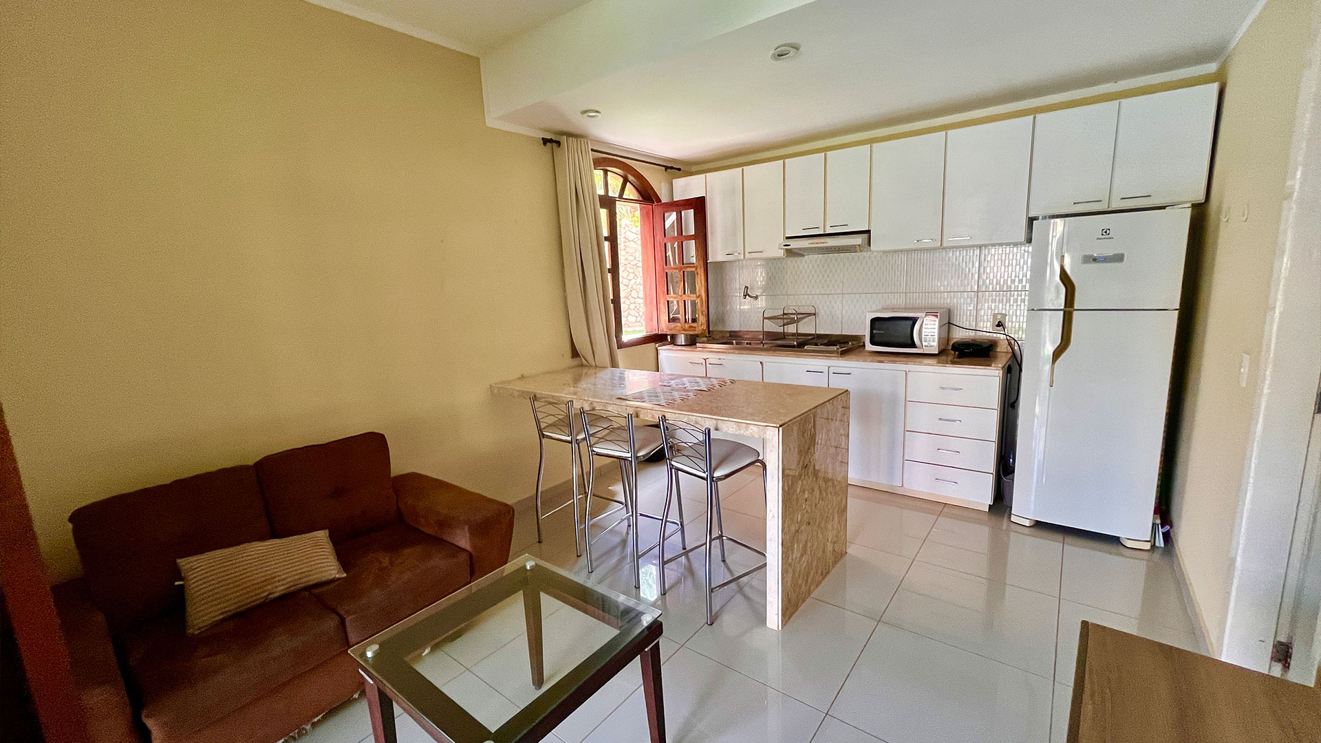 O espaço é completo e bem equipado, com ar-condicionado, cozinha funcional, Wi-Fi, varanda e ambientes pensados pra uma estadia confortável. O condomínio é um grande diferencial, com piscinas, jardim, estacionamento e segurança, além de áreas comuns agradáveis que deixam a experiência ainda mais relaxante — perfeito tanto para casais quanto para pequenas famílias.