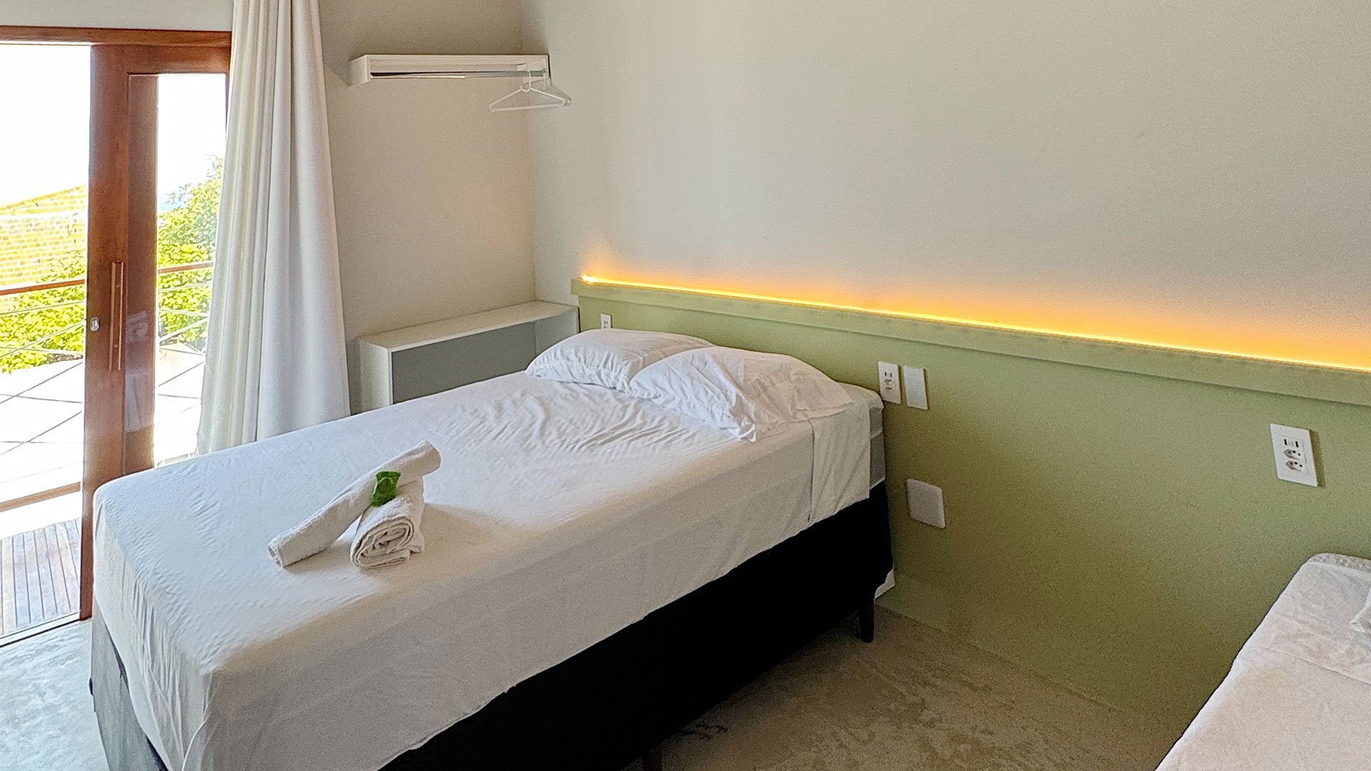 A estrutura é completa e pensada nos detalhes: são 3 quartos climatizados (incluindo uma suíte master com banheira de hidromassagem), sala espaçosa e cozinha totalmente equipada. Na área externa, a piscina privativa, churrasqueira, banheiro e chuveiro externo criam o cenário ideal pra relaxar e aproveitar ao máximo, com capacidade para até 10 pessoas, garantindo conforto e exclusividade durante toda a estadia.