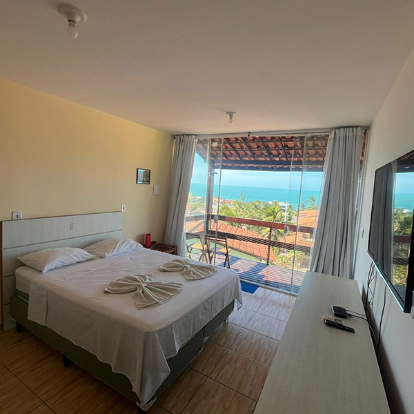 A pousada tem um estilo simples, mas bem funcional e confortável, com quartos equipados com ar-condicionado, TV e algumas opções com varanda e até vista para o mar. Oferece café da manhã estilo buffet bem elogiado, Wi-Fi, estacionamento gratuito e um atendimento bastante atencioso. No geral, é uma opção com ótimo custo-benefício pra quem quer ficar bem localizado e ter uma estadia tranquila sem gastar tanto.