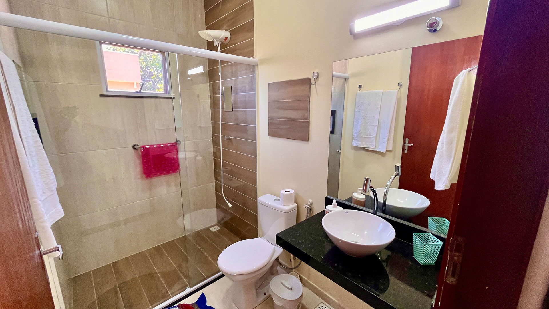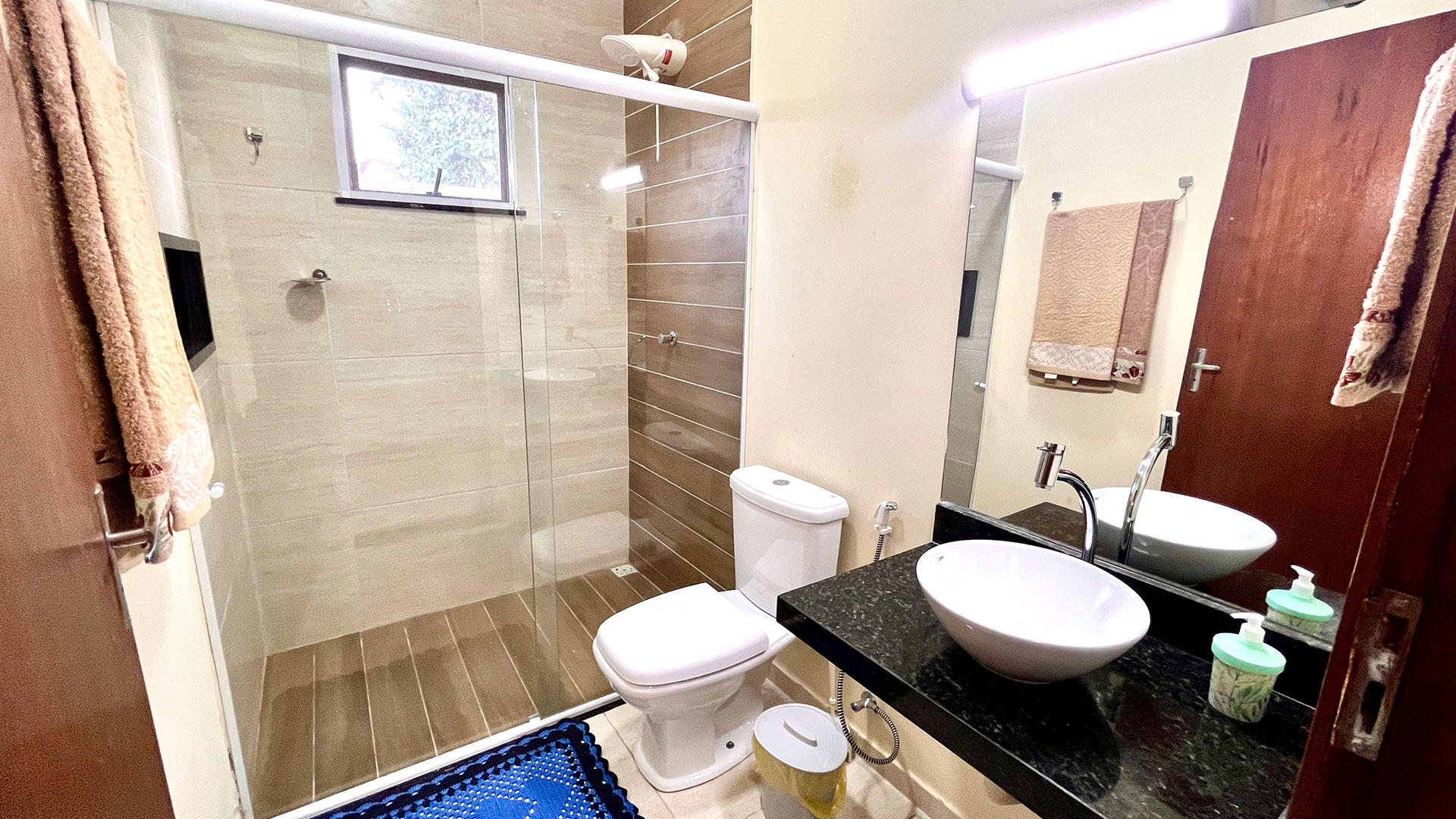 O imóvel é moderno e bem equipado, com 4 suítes climatizadas, todas com TV, além de sala confortável com TV a cabo e cozinha completa. A casa ainda conta com Wi-Fi em todos os ambientes e vários banheiros, garantindo praticidade para grupos maiores. No geral, é uma escolha ideal pra quem busca uma experiência mais completa, com muito lazer, segurança e conforto durante a estadia.