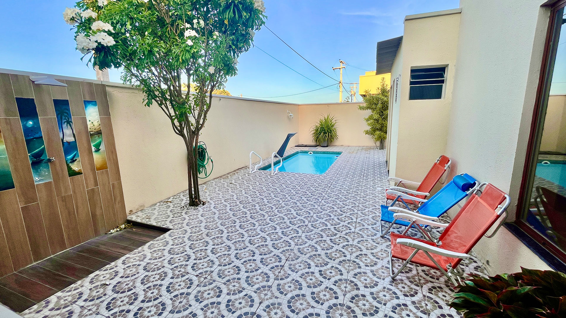 Essa casa é uma excelente opção pra quem quer muito conforto, espaço e uma estrutura completa em um ambiente seguro e tranquilo. Localizada em um condomínio fechado com portaria 24h, ela oferece não só uma área de lazer privativa com piscina, deck e churrasqueira, mas também acesso a uma estrutura de clube com piscina, quadras esportivas, academia e até salão de jogos. É perfeita pra quem viaja em grupo e quer aproveitar tanto dentro quanto fora da casa.
